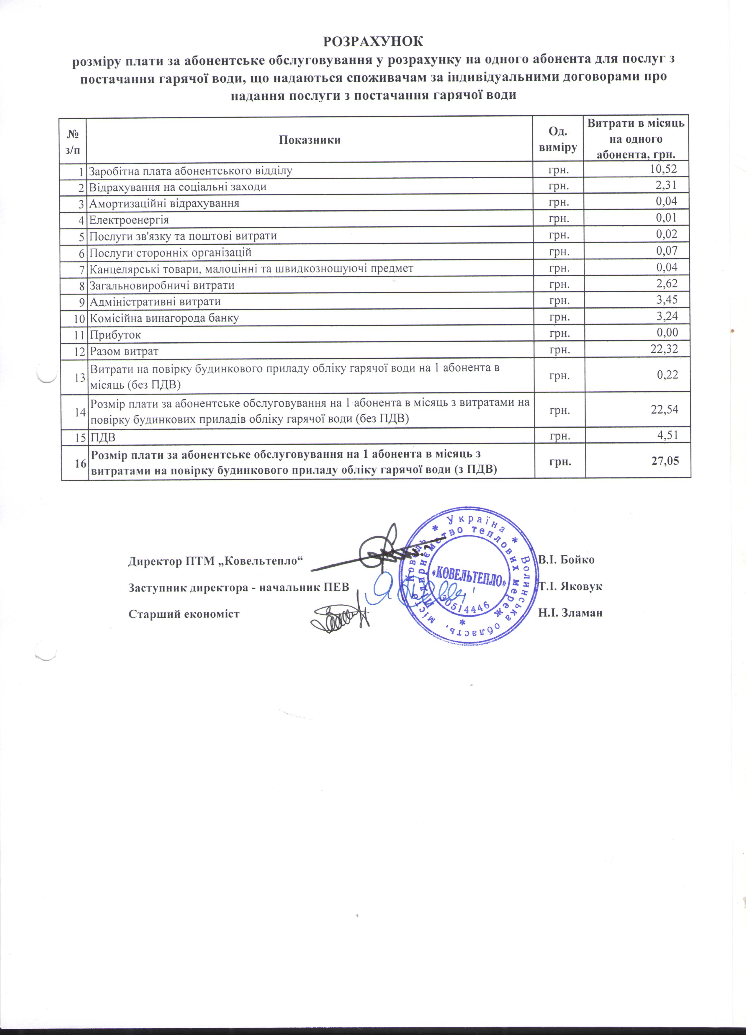 - Розрахунок розміру плати за абонентське обслуговування на послугу з постачання гарячої води