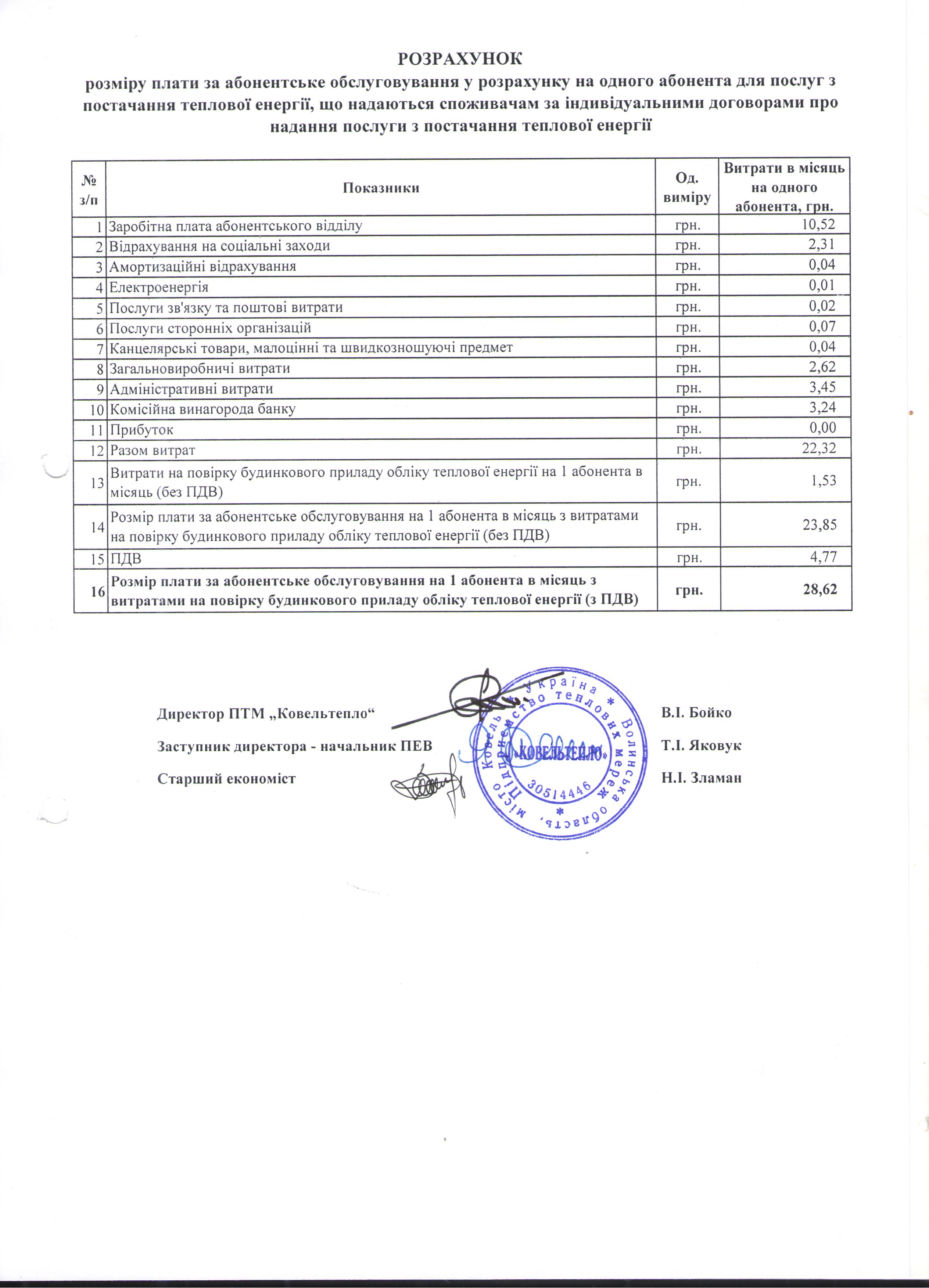 - Розрахунок розміру плати за абонентське обслуговування на послугу з постачання теплової енергії